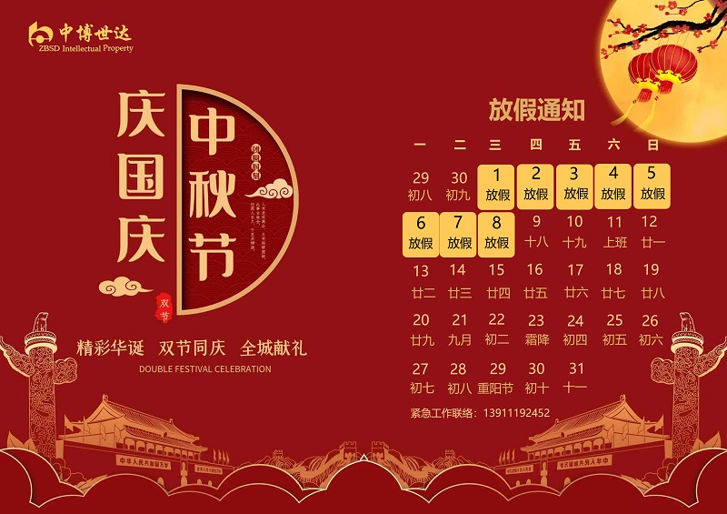 金秋时节,举国同庆,中秋团圆。值此2025年国庆与中秋双节来临之际,北京中博世达专利商标代理有限公司向您致以最诚挚的节日祝福,祝您与家人节日快乐、阖家幸福!